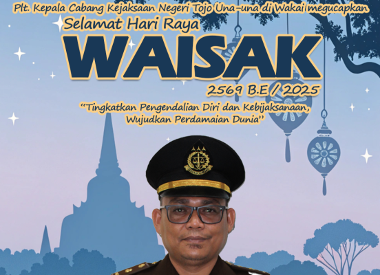 Plt. Kepala Cabang Kejaksaan Negeri Tojo Una-Una di Wakai Bapak LA ODE MUHAMMAD NUZUL, S.H. beserta jajaran mengucapkan Selamat Hari Raya Waisak 2569… Selengkapnya...