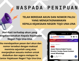 Pada hari Senin tanggal 05 Januari 2026, Sekira pukul 07.30 WITA bertempat di Kejaksaan Negeri Tojo Una Una, telah dilaksanakan Apel Pagi, Kepala Kejaksaan… Selengkapnya...
